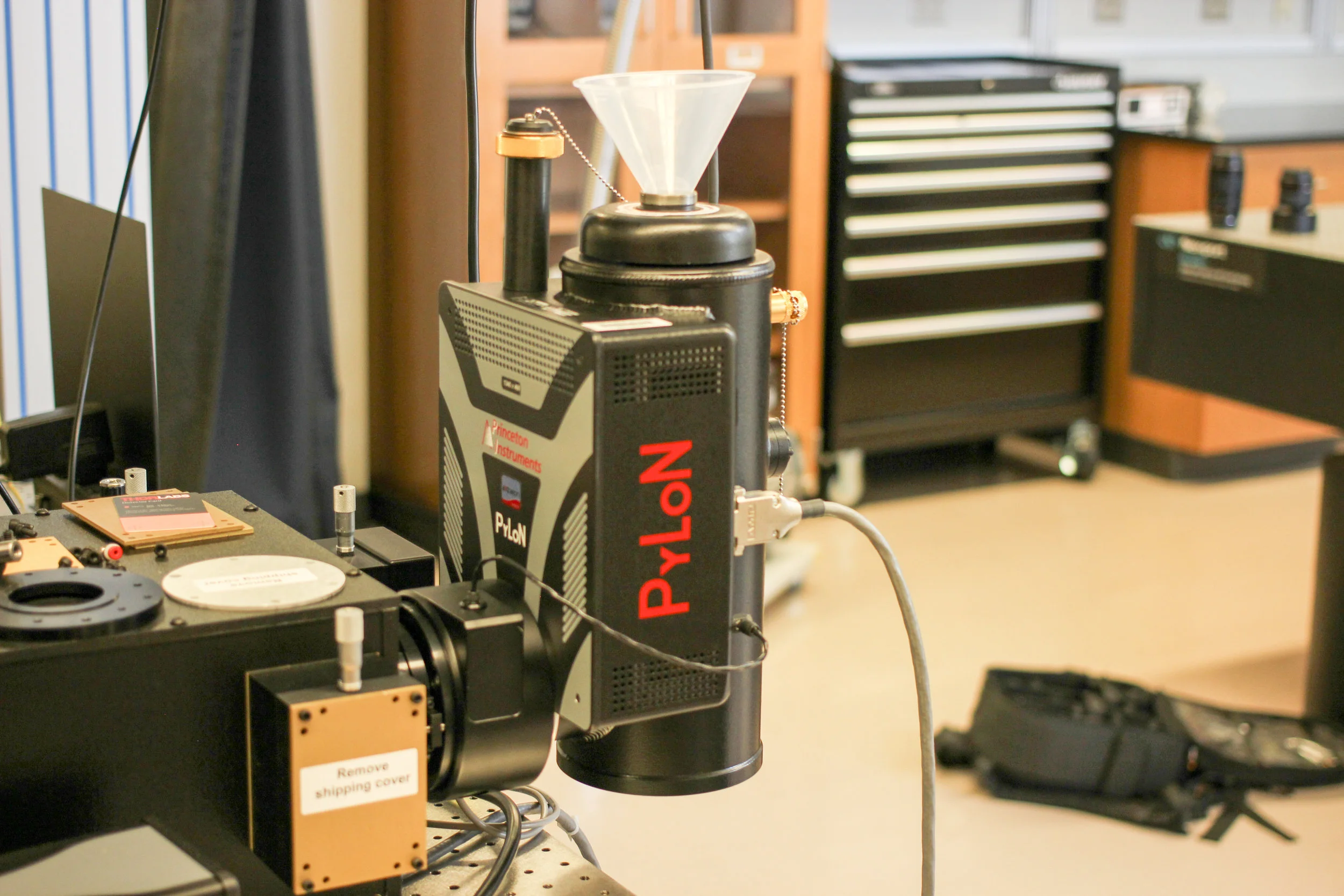 Liquid nitrogen cooled Si CCD camera (back-illuminated, deep depletion, UV optimized) mounted on a 750 mm triple grating spectrometer/monochromator